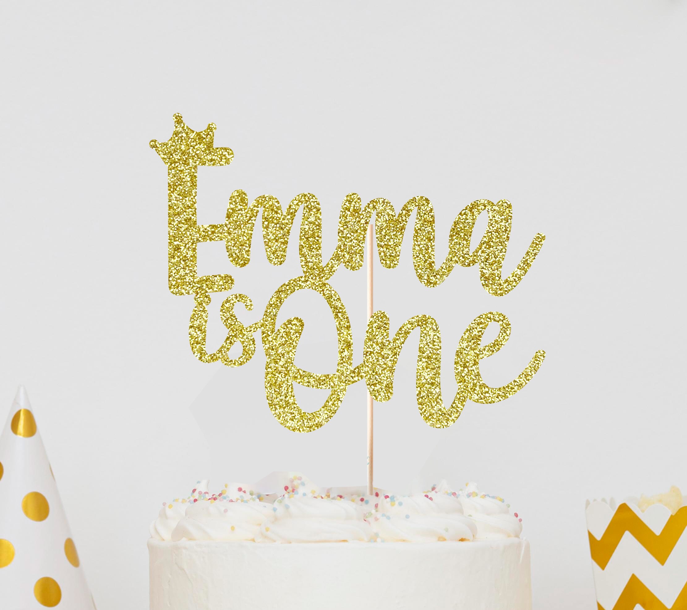 First Birthday Cake Topper, Gold One with Name, 1st Birthday β funmunchkins