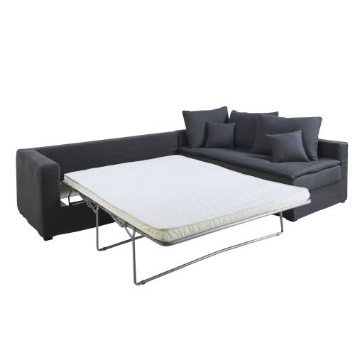 White 5-Seater Washed Linen Right-Hand Corner Sofa Bed Célestin