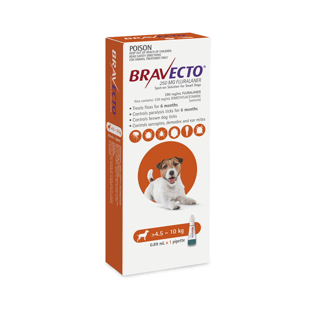 Bravecto Spot On For Dogs Orange 4 5 10kg 2 Pack.