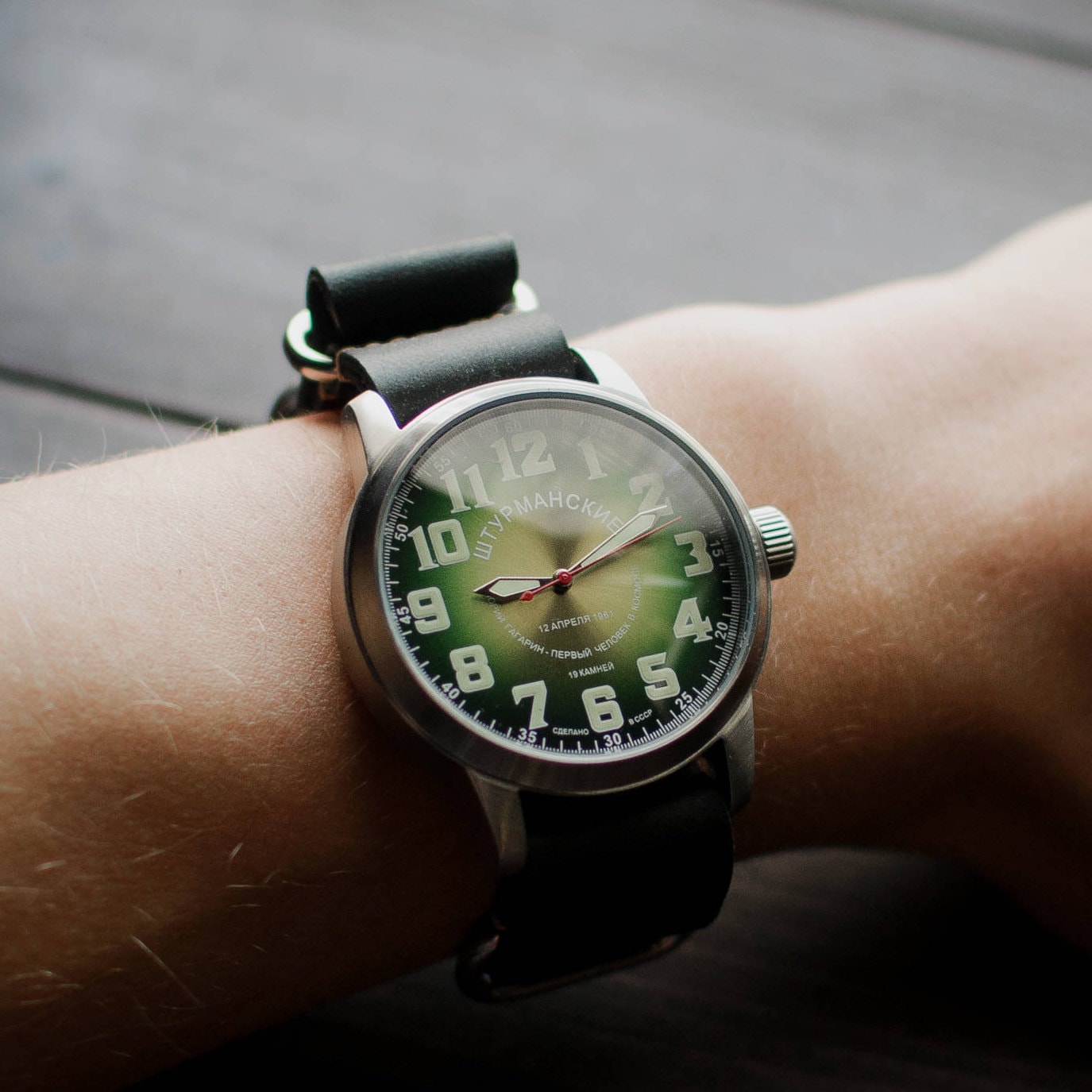 Mens wrist watches Poljot Shturmanskie 19 jewels green face