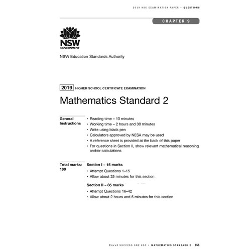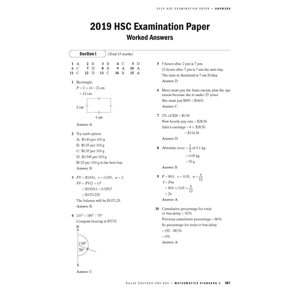 WebGet the Results You Want! NEW with Excel Success One HSC Mathematics Standard 2 2022 Edition. To maximize your marks, you need to practise as many actual past HSC. WebLast year's HSC maths exam featured questions requiring students to use concepts which had been taught to advanced mathematics classes but not those in the. WebWorked Solutions to the 2021 HSC Mathematics Standard 2 Exam. by Mindy Amaral. Each year, as soon as the paper is officially published, I work through the solutions to the latest. WebVisit https://sites.google.com/view/TheMathsStudio for the HSC Revision Video Catalogue.Source: © NSW Education Standards AuthorityDisclaimer - These. WebNESA 2021 Mathematics Standard 2 HSC Examination 19 5 The Coordinated Universal Time (UTC) of Auckland is +12 hours and the UTC of 1 Solution MS2 Chicago is –5. WebBoard of Studies Teaching and Educational Standards NSW Australia serves teachers and a million students in both government and non-government schools. HSC examinations,. WebMaths Ext 2 HSC Papers. General / Standard Maths Trial Papers. 101 papers online, 95 w. sol. Maths (2U) Trial Papers. 537 papers online, 515 w. sol. Maths Ext 1 Trial Papers.. WebFinancial mathematics (Standard 2) study session. Karen Bellamy gives an overview of financial mathematics topic for Mathematics Standard 2 in this Aurora College. WebMathematics Standard 2 Revision & Exam Workbook. Mathematics Standard 2 Study Guide. Mathematics Standard 2 Success Past Papers. Financial Budget Assessment.