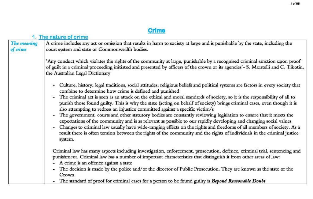 WebLegal Studies - HSC Core Modules. Crime; Human Rights; Option Modules. Consumer Law; Workplace Law; Family Law; Shelter; Indigenous Peoples; World. WebThe Legal Studies Syllabus consists of two core units (which the whole state completes) and two options. The Two Core units are Human Rights and Crime. These. WebLegal Studies HSC Syllabus Notes. PART 1: Crime 1 - The Nature of Crime. 1.1 - Meaning of crime. Crime: an act or omission of duty resulting in harm to society that is punishable by. WebHSC Legal Studies Consumer Notes - Entire Syllabus with Articles and Legislation | Bored Of Studies. Add Resource. Latest reviews. Search resources.. WebDymocks Tutoring KeyPoints series are market-leading study guides to support your HSC journey. Legal Studies Syllabus, 2 Unit - Dec 06 2020 HSC Legal Studies - Nov 28 2022. WebFind the Study Notes you need. Our extensive library of handy and helpful HSC Legal Studies resources including past papers with worked solutions, study guides, study.