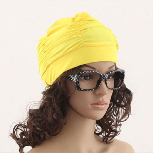 Mojoyce Long Hair Swim Cap Pleated Stretch Elastic Nylon Swimming Cap