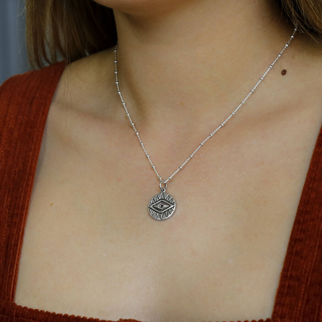 Sterling Silver Evil Eye Necklace By Ashiana London