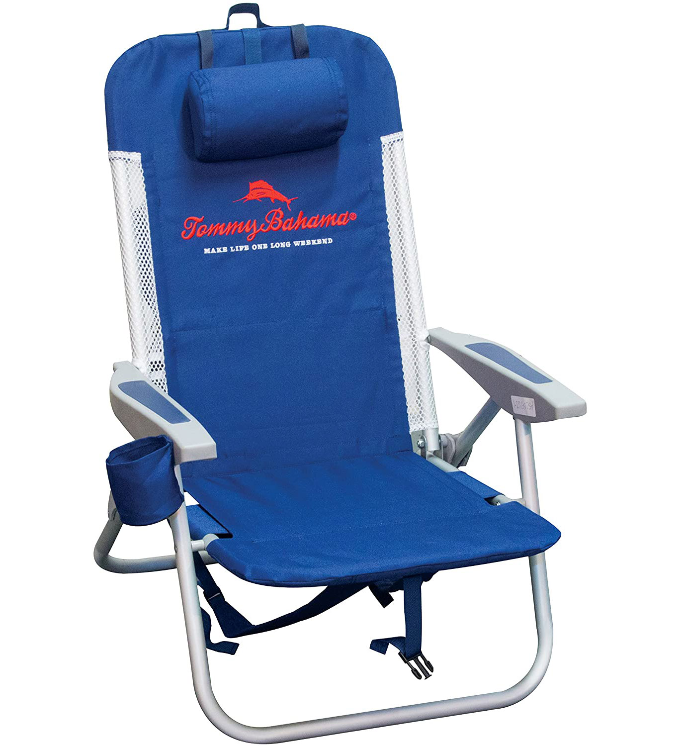 TOMMY BAHAMA Folding Beach Chair with Back Storage Pouches & Head Rest