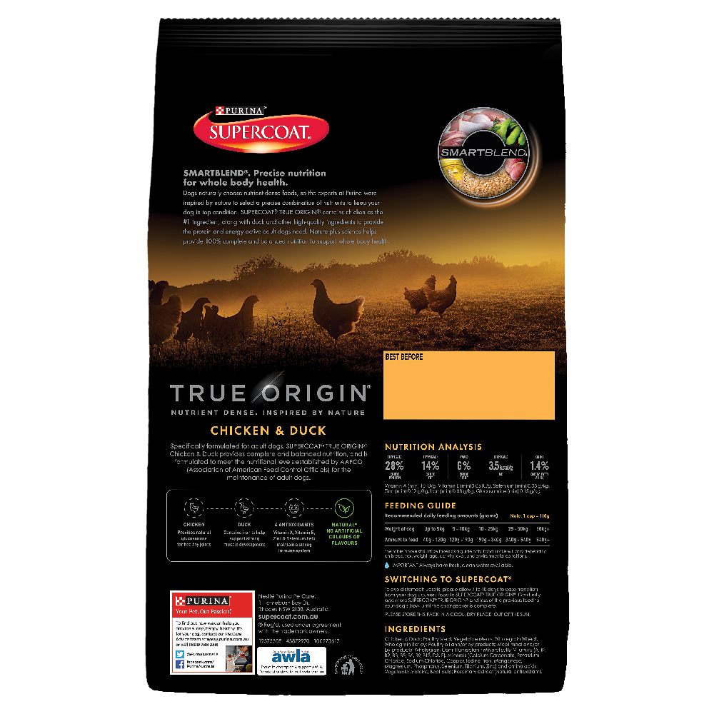 WebSupercoat True Origin Chicken and Duck Dry Food is a dual-protein diet to provide energy, iron for strong muscle development and a natural source of glucosamine. WebTrue Origin is made by Purina and contains several I consider red flags: “meat meal” (what kind of meat?), “byproducts” (which ones?) whole ground corn…. And FYI, pet..