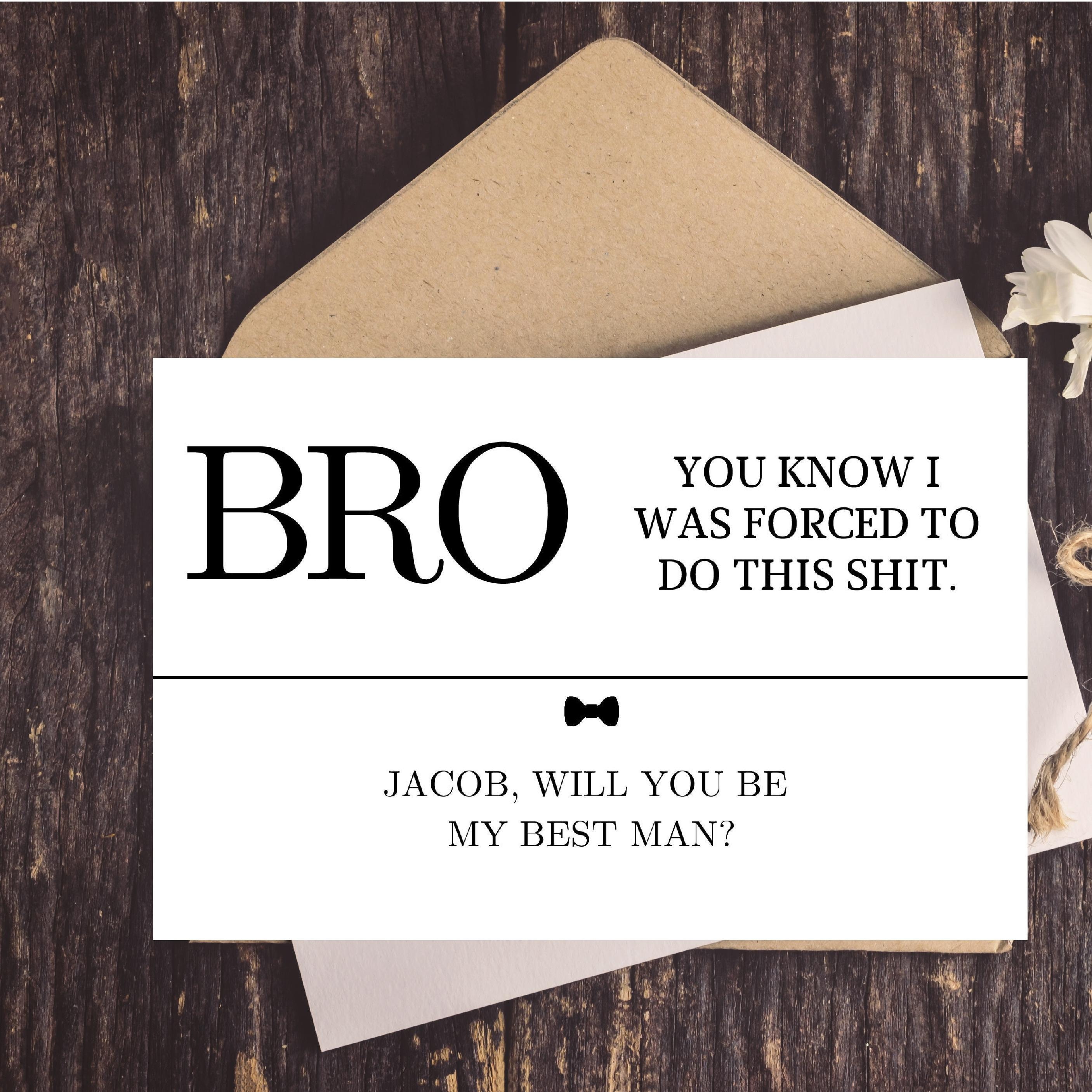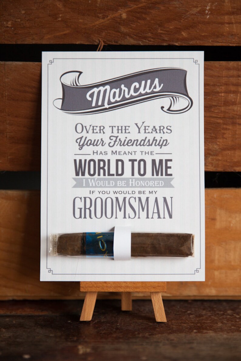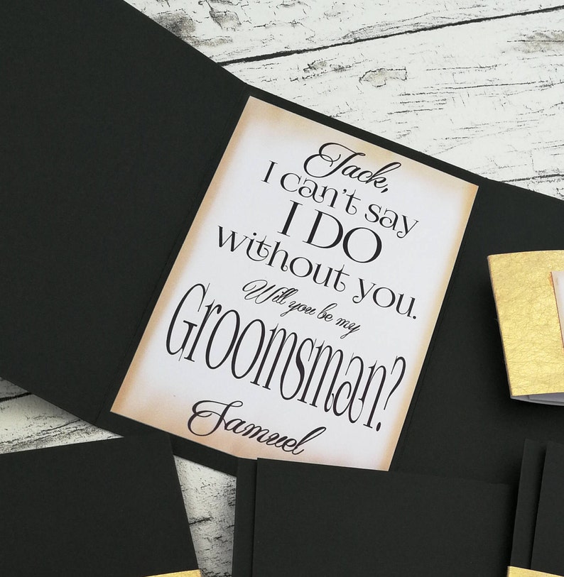 WebInstead of writing, “Will you be my groomsman?” replace it with with something more clever like, “She said ‘yes,’ now it’s your turn” or “Your service as a. WebGroomsman Card Personalised Wedding Proposal Will you be my best man page boy usher witness officiant ring bearer reader bridesmaid flower girl maid of honour matron of. WebFrom wedding lingo to bachelor party plans, here are some common texts you’ll send to your groomsmen during wedding planning. “Will you be my. WebGroomsman Proposal Cards 8 Pieces Will You Be My Groomsman and 2 Pieces Man Cards with Envelopes Suit up Card Set of 10 Black and Gold Groomsmen.